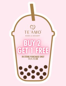 Our Buy 2, Get 1 Free drinks offer is good for purchasing drinks in-store only. Visit us for more details.