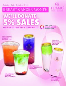 This October, TE’AMO joins the fight against breast cancer with a refreshing way to show your support. From October 1st to 31st, we’re featuring a special menu of pink-inspired drinks that are not only delicious but also meaningful.